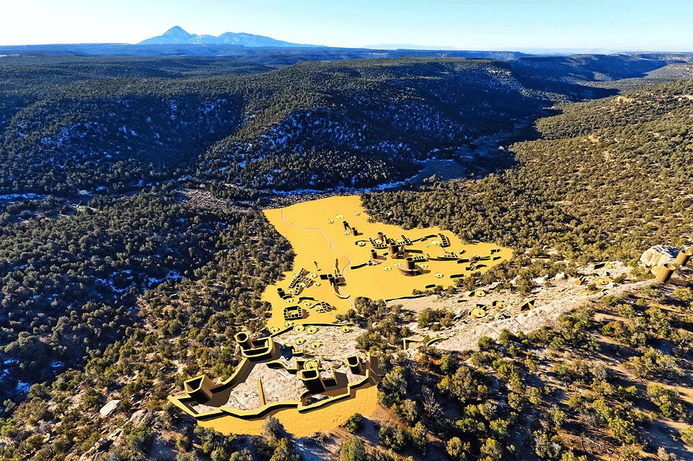 San Juan Ancestral Puebloan Culture, c. 13th Century C.E. (post-Mesa Verde); located near Cortez, Colorado. Eelvation is c. 1911 meters (6271 feet) above sea level. Materials: mortarless stone walls, wood log roof structure, with mud/clay roof. Data for CG model: |