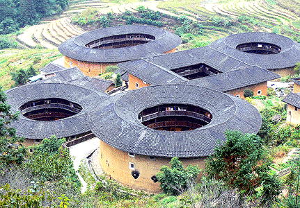 Hakka Culture, Fujian Province, China, housing up to 80 families or more, in use from the 12th Century C.E. to Present, located in Zhenchenglou Hongkeng Yongding in Southeastern Fujian, China.