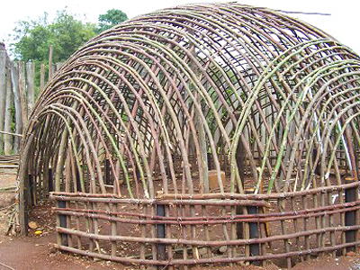 Bantu Culture, Includes South Africa, KwaZulu-Natal Province, and Zimbabwe, Zambia, Tanzania, and Mozambique; from pre-historic times, still in use. Materials: wooden sticks structure, thatch from braided split reeds and grass; termite mound mixed with dung sets into resilient stone-polishable flooring. Data for CG model: |